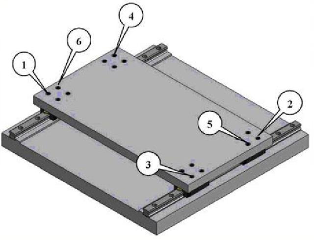 (4)按照圖示的順序把移動平臺安裝到導軌的滑塊上,推動平臺看是否順暢有無卡滯現(xiàn)象,如果有需要對導軌滑塊的螺釘進行調(diào)整直至順暢滑行。